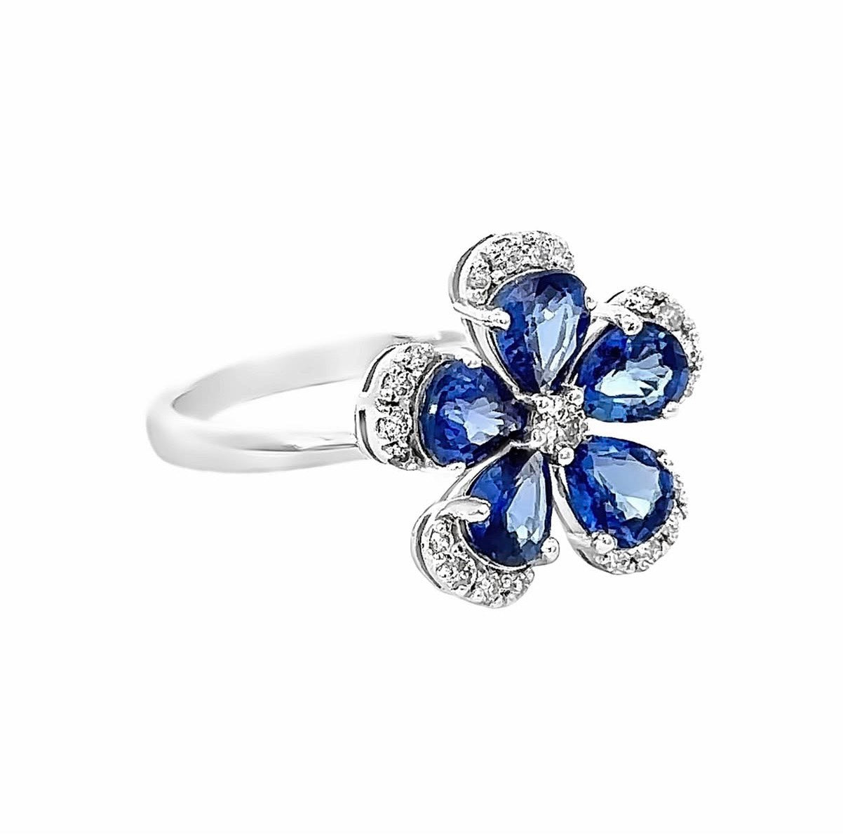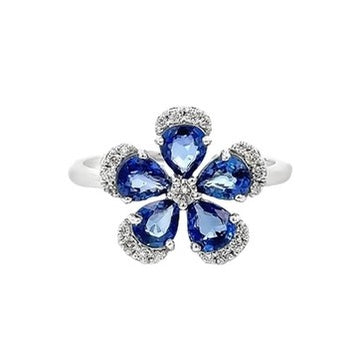 K18WG サファイア × ダイヤモンド フラワーリング